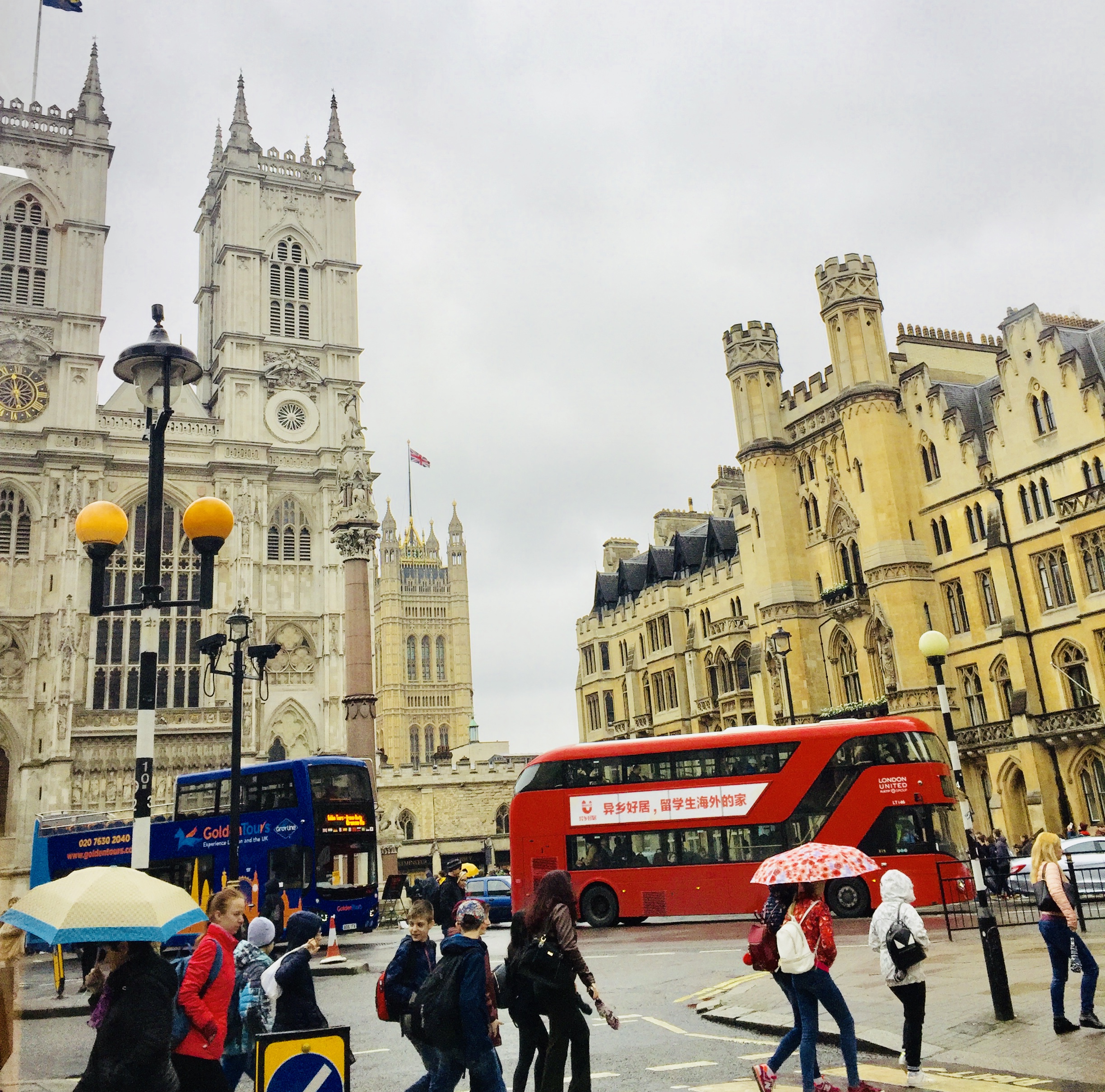 I could show you shaky snapshots of palaces, parliament, Westminster and such. These photos were taken from the windy, wet top of a bright red double-decker bus. I stood up, braced my legs and aimed my cell phone camera. The bus careened around narrow curves of London.