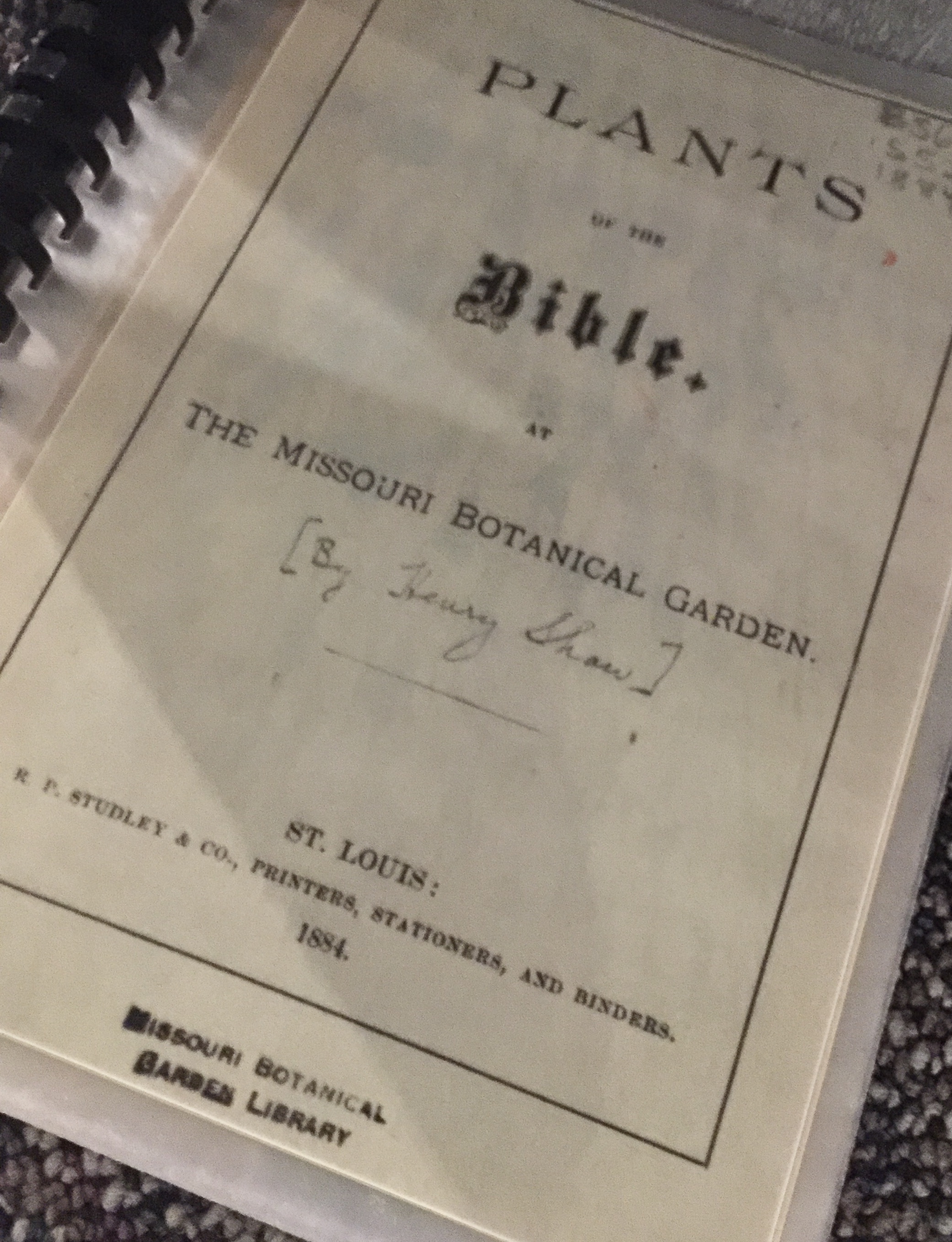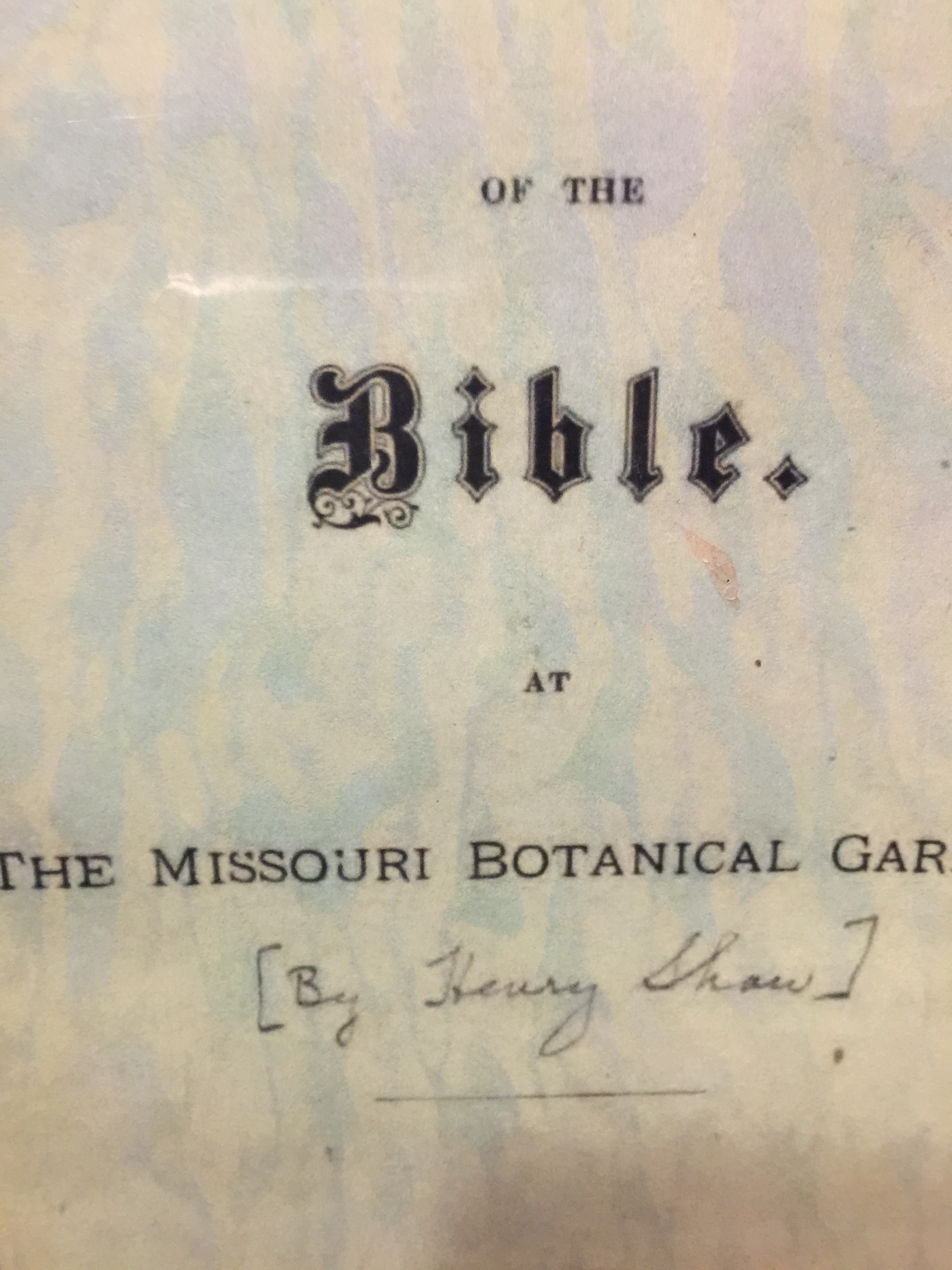 Ironically, when I stepped into the warmth of the Shaw’s Garden Museum, I was amazed to find pages of a book Henry Shaw wrote entitled, “Plants of the Bible”.