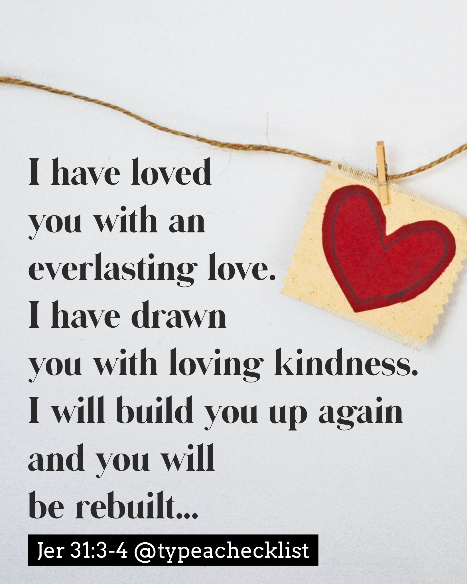 YOU are loved with an everlasting love!. – Jeremiah 31:3. ❤️