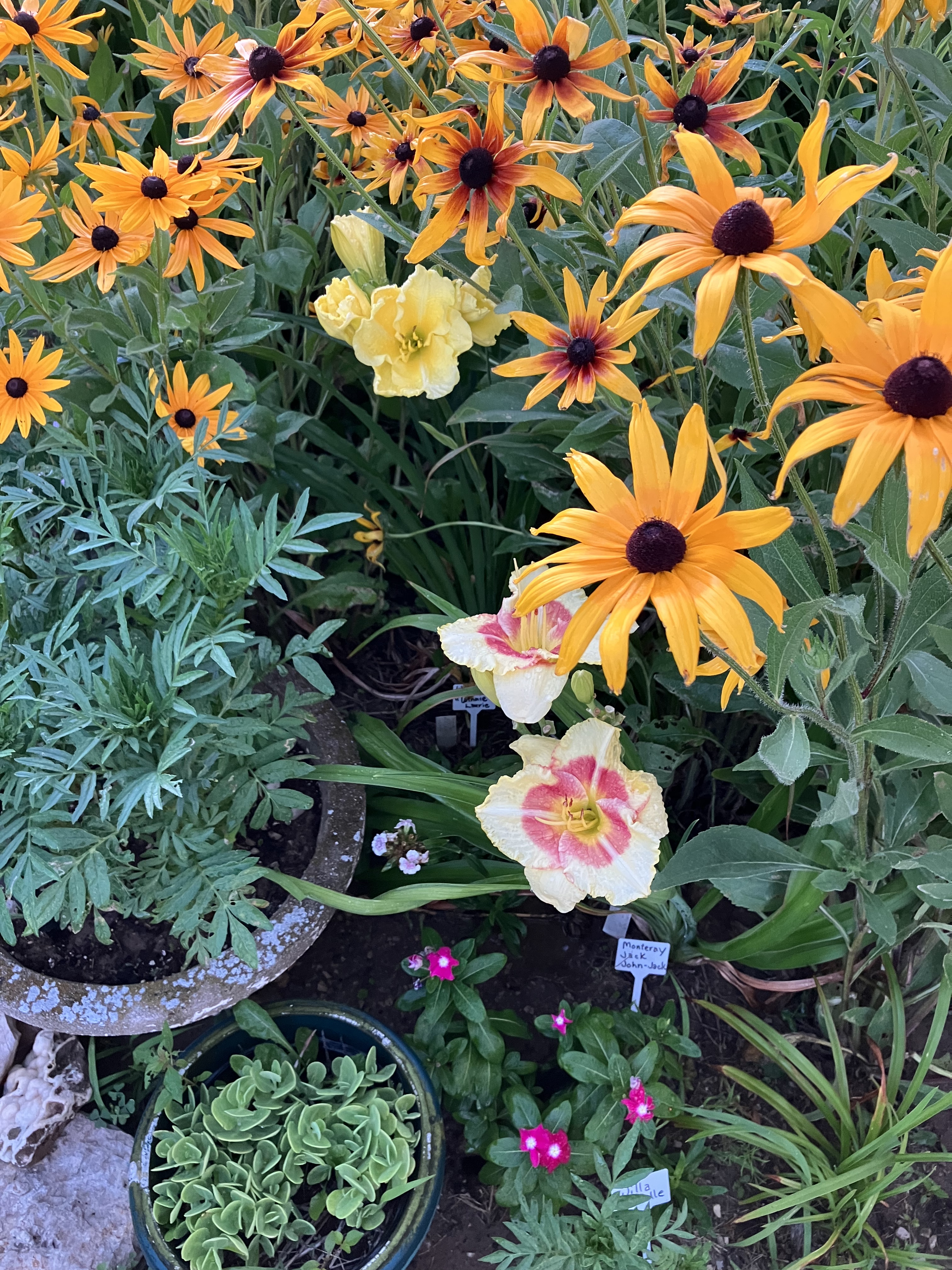 Before I even began to rent, my kind landlord allowed me to create the garden. I hand carried the flowers in buckets from the home place I had to leave after my husband left me.