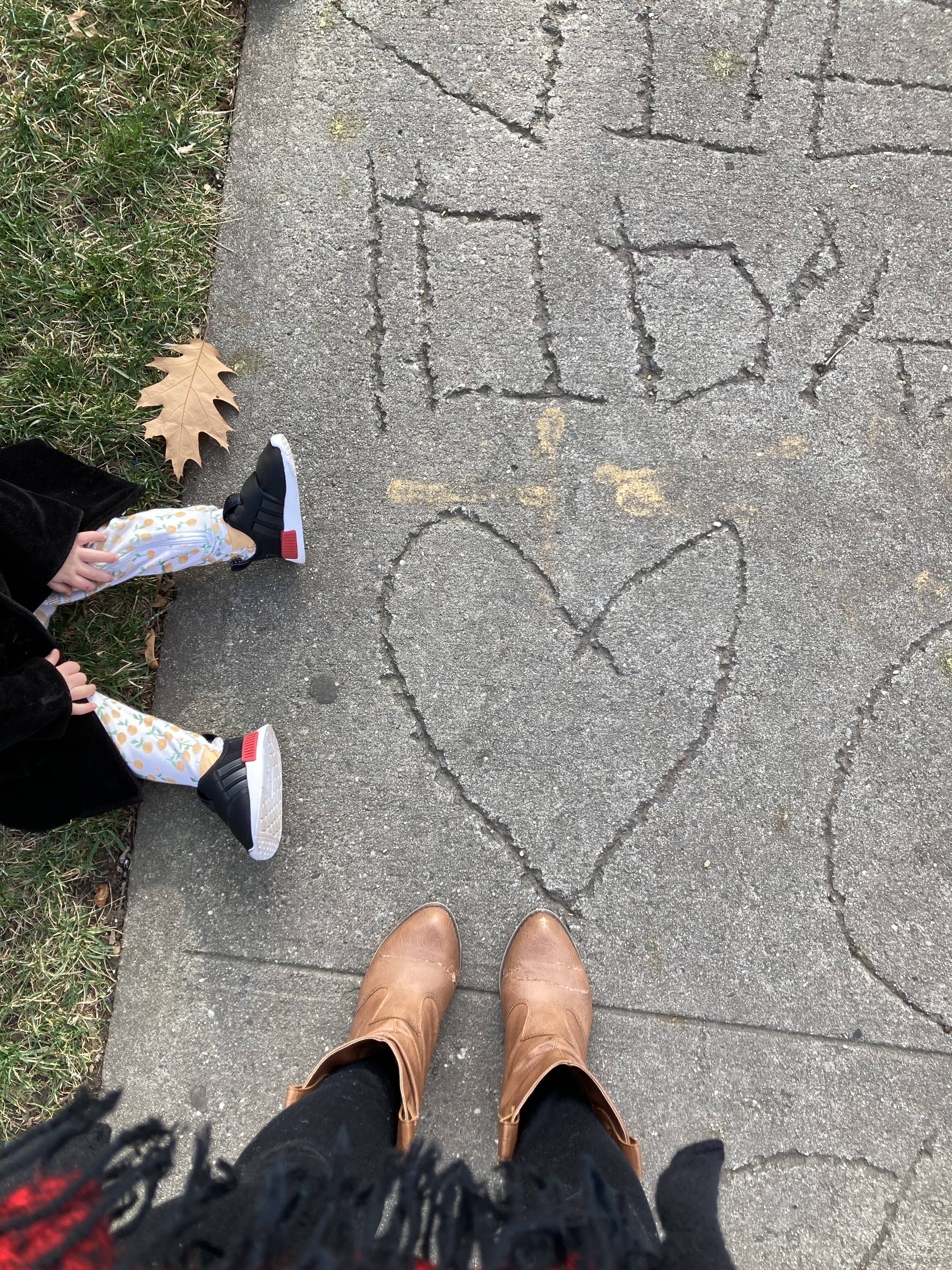 The toddler pulls my hand and scoots hopefully. The little one pauses to talk to pigeons. It doesn’t matter whether trash drifts in gutters.