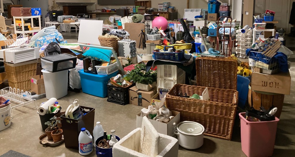Remnants of eight grandparents, four business offices,  a burned-down National Stock Yards mingled with three daughters’ possessions, one collector’s whims, a survivalist’s hoarding
