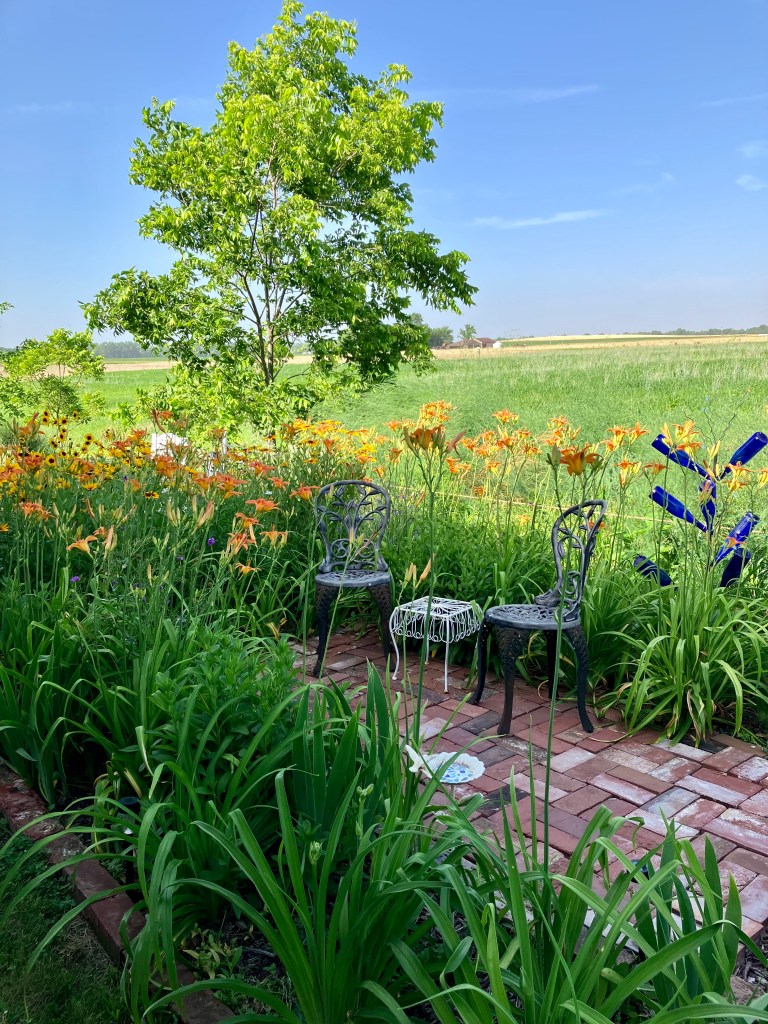 Today… I look at my garden in amazement.  The garden has gone through four additions, including a bricked patio with seating for the perfect Teddy Bear Tea party. (All interested toddlers invited. )