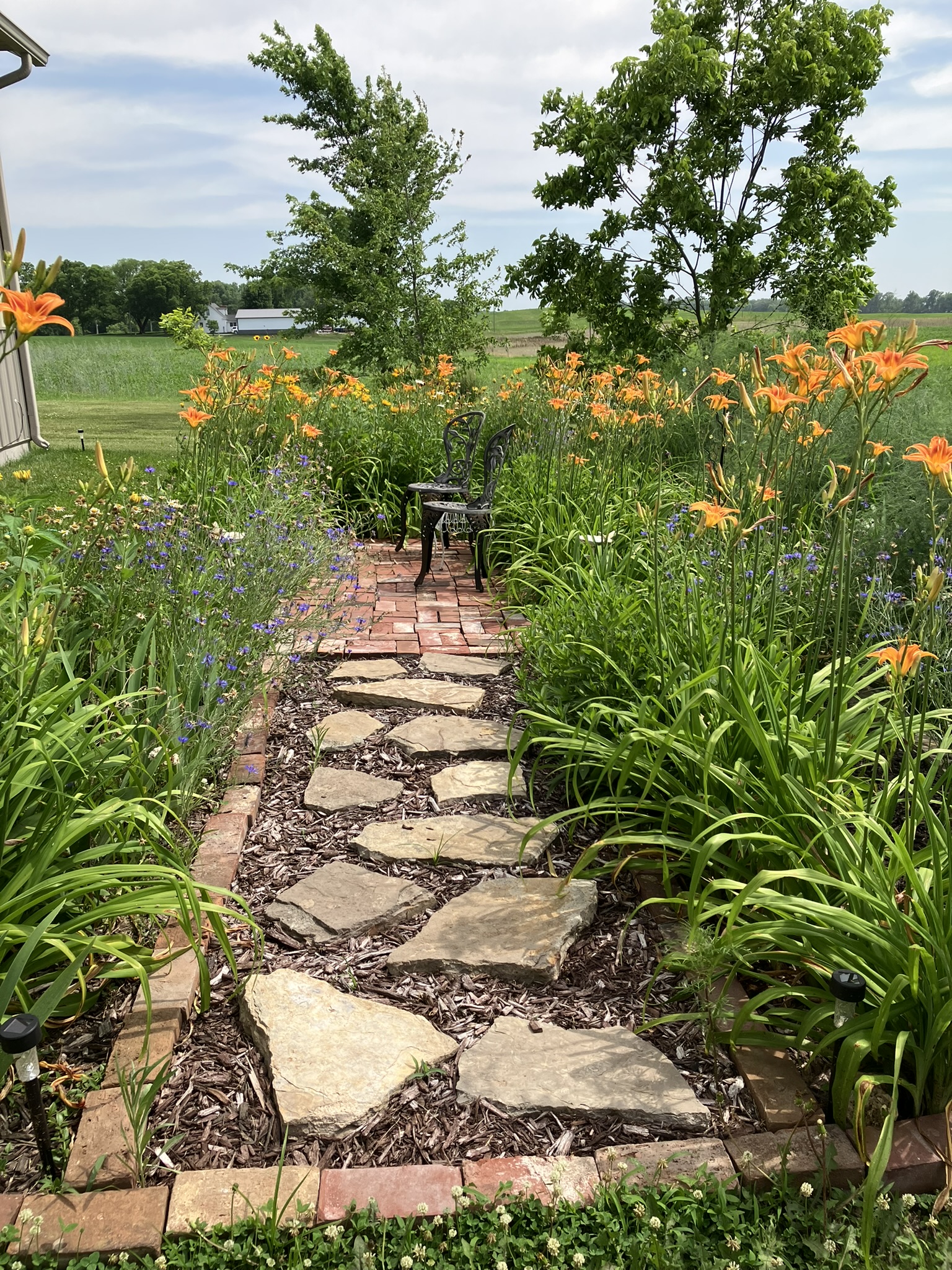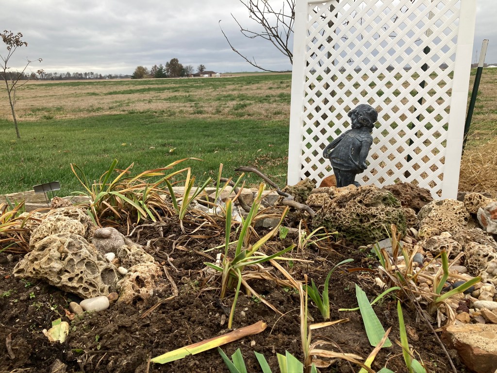 One crisp fall day I dug and dumped dirt, bordering my garden with stone and a tiny brick walkway.