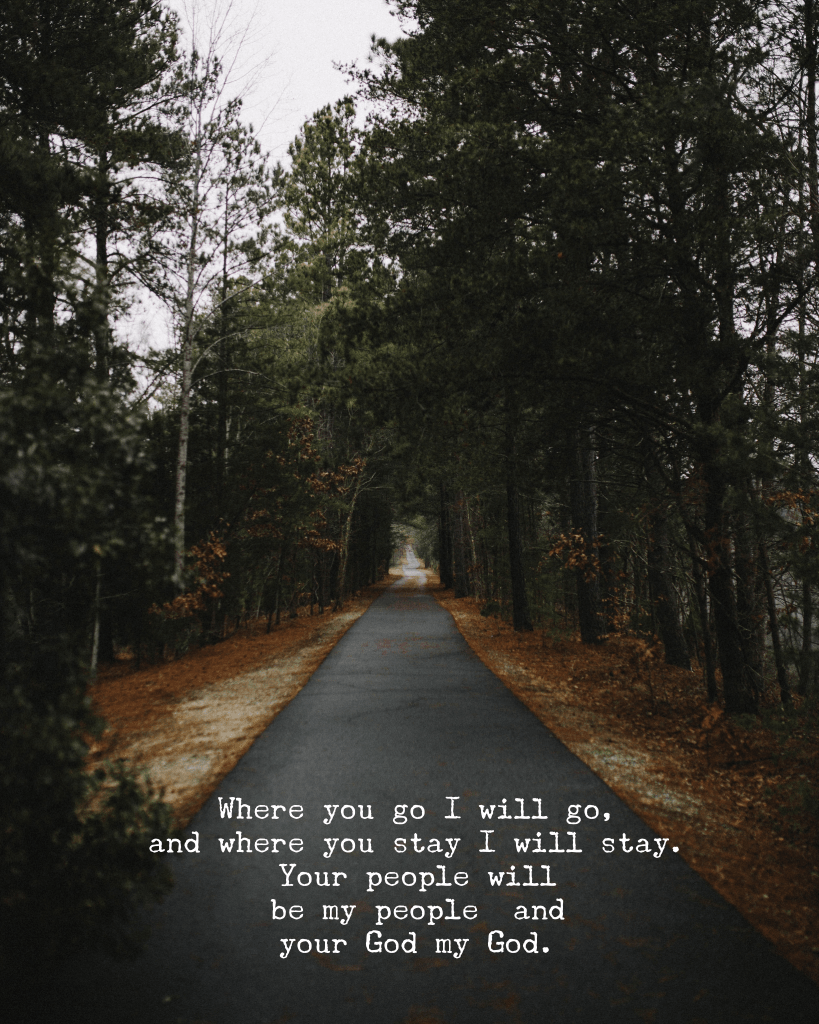 They had both lost their husbands and their homes. Ruth wanted to stick with Naomi and take a trip back to the old gal’s homeplace.