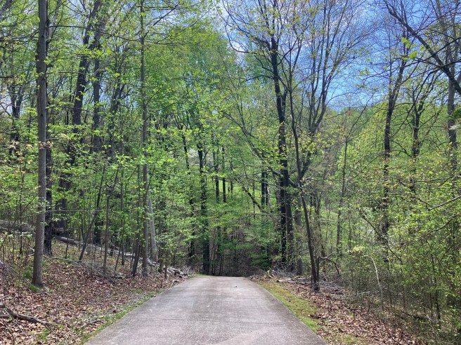 I kept rolling past more forgotten farms. White dogwood trees spread confetti onto the roadway. Beautiful scenery took my breath away.