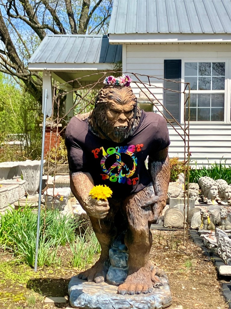 Near Dyers Creek I found “Granddady’s Farm” and a roadside produce stand. The next roadside stand was guarded by a Big Foot statue.