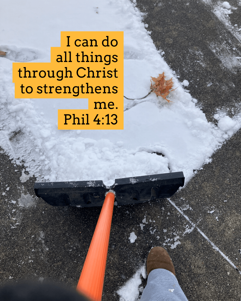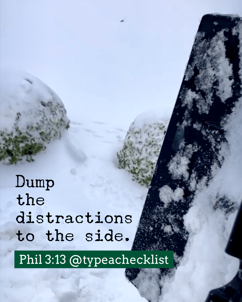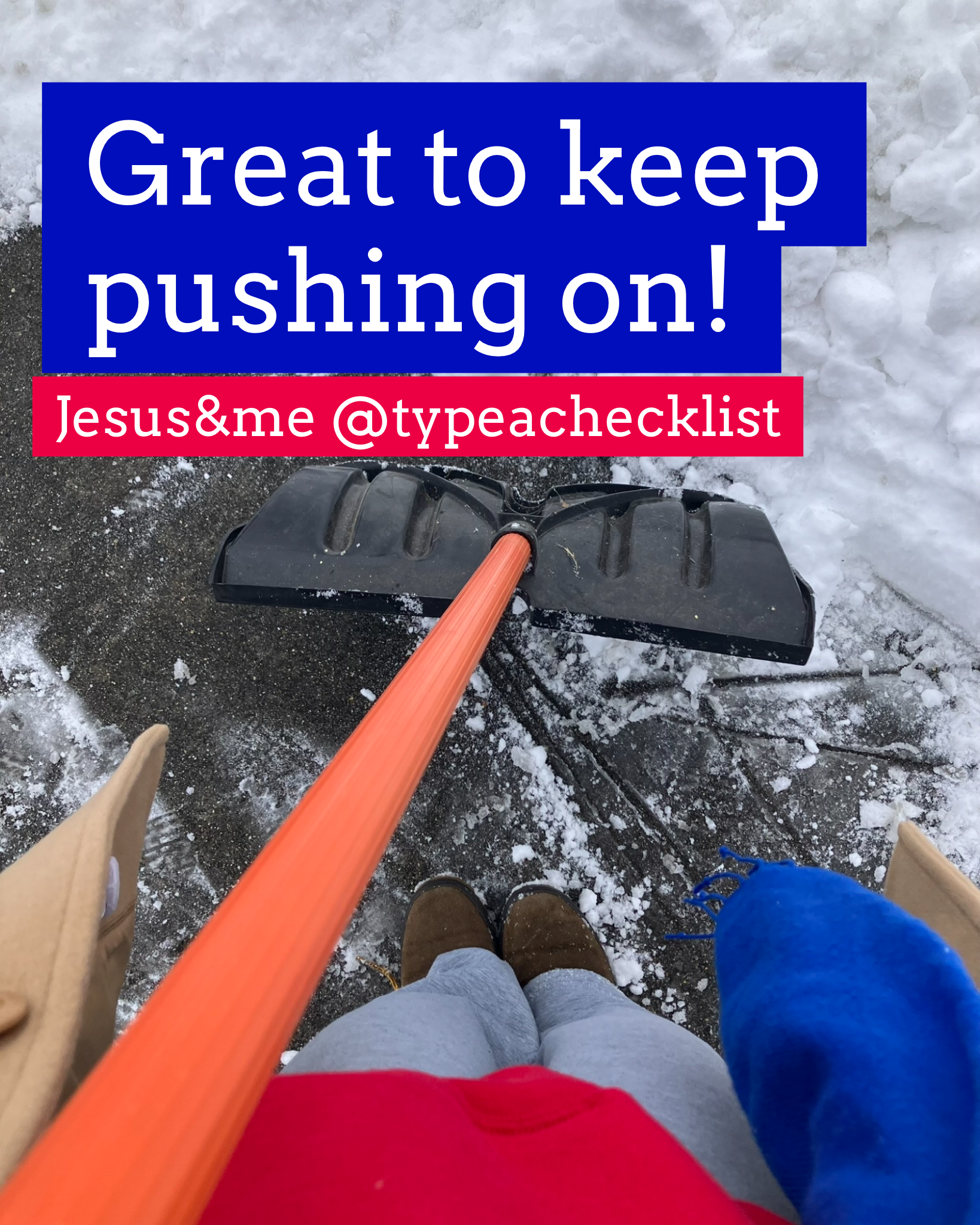 I got into the rhythm of pushing snow out of the way: -Just keep moving that huge scoop down the drive.