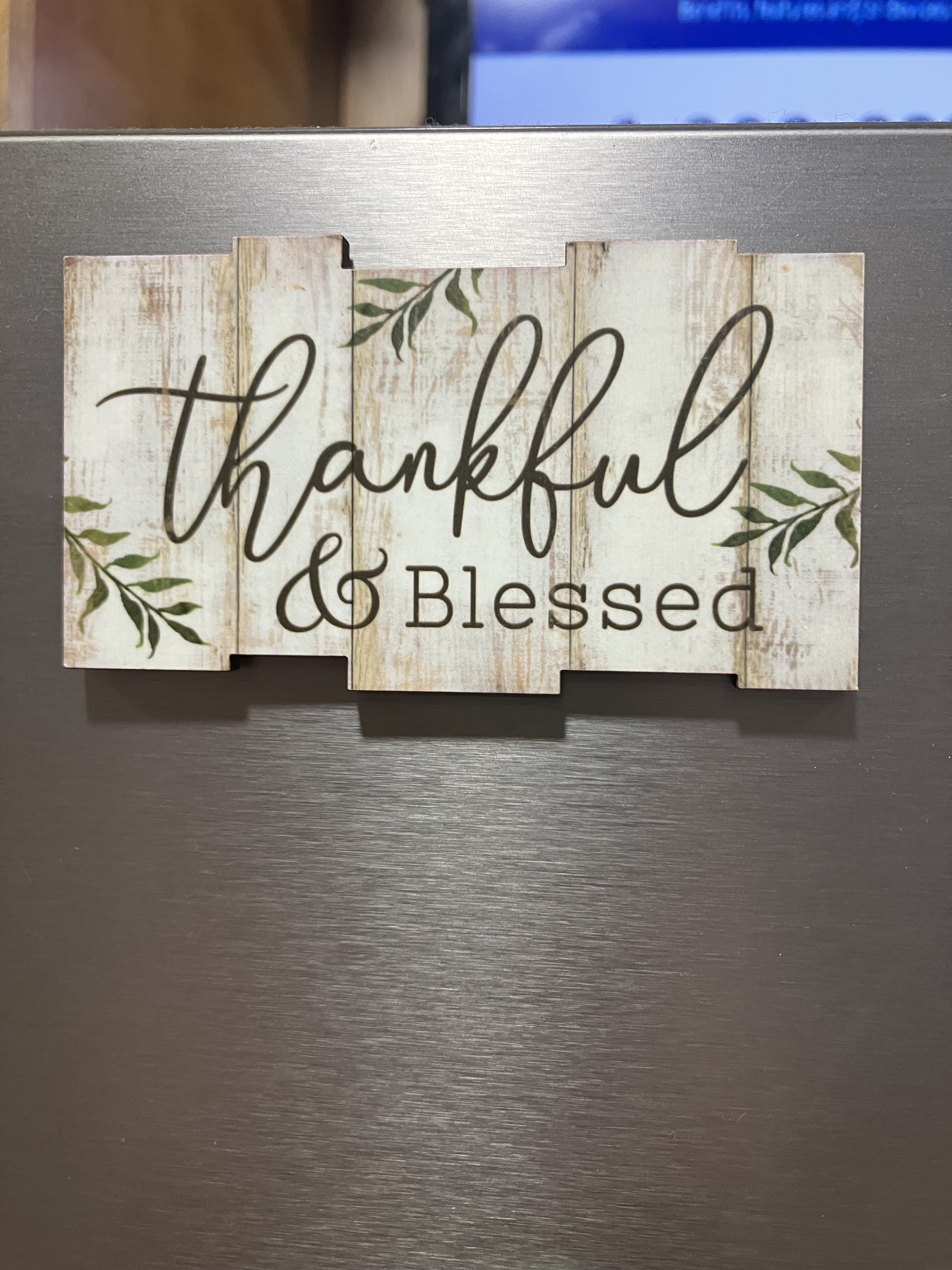 My refrigerator is really thankful. I should be too. “Thankful and Blessed” is my fridge’s top magnet. It’s been stuck there for years. My refrigerator’s very wise. If I remember how blessed I am, I’ll do a lot better in 2026.