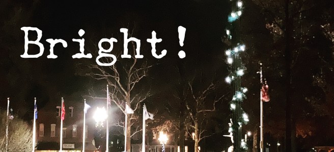 I love the lights in our village park. They represent many gifts of light. The flags shimmer in the light. I’m grateful for our country. The veteran’s statue reflects the light. Thank you, veterans. These lights remind me of all the Village caretakers who light our way Thanks, buddies. A nativity scene shimmers in the … Continue reading Shine Bright!